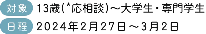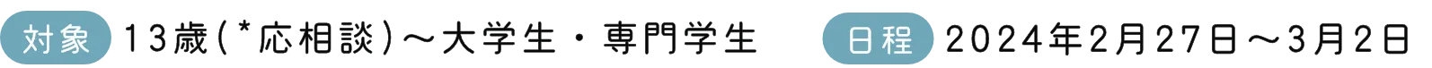 | 対象 | 13歳(*応相談)〜大学生・専門学生 |